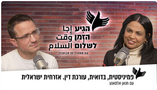 עו”ד חנאן אלסאנע בשיחה עם משה רדמן אבוטבול בפודקאסט ״הגע זמן שלום״ – על זהות לאומית ואתגרי האוכלוסיה הבדואית בנגב, על זהות פמיניסטית ועל רדיפת שלום, ועל המפגש של כל אלה עם אינספור תקרות זכוכית – שלא עצרו אותה